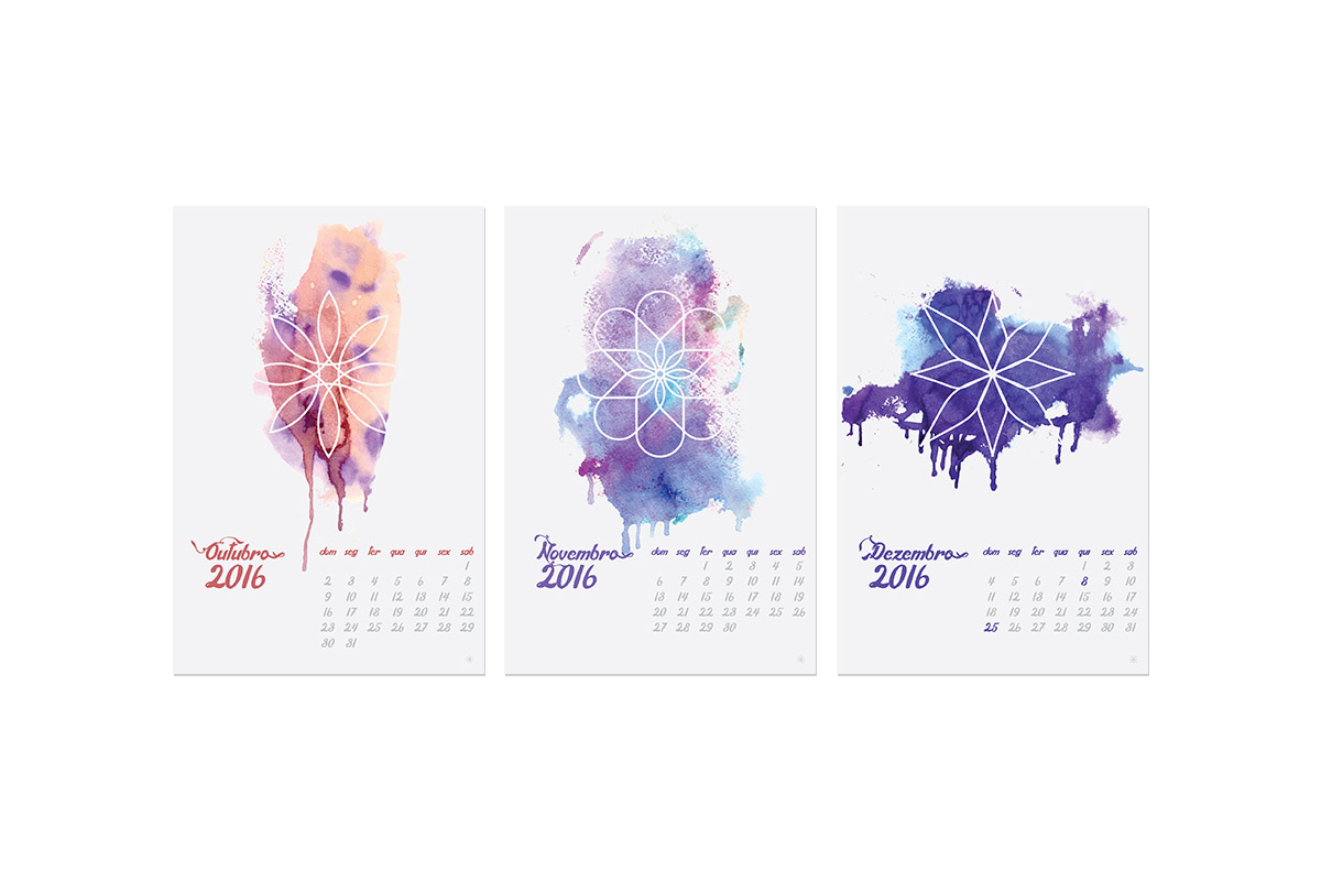 Calendário de mesa, onde todos os meses terá uma flor sobre tinta.